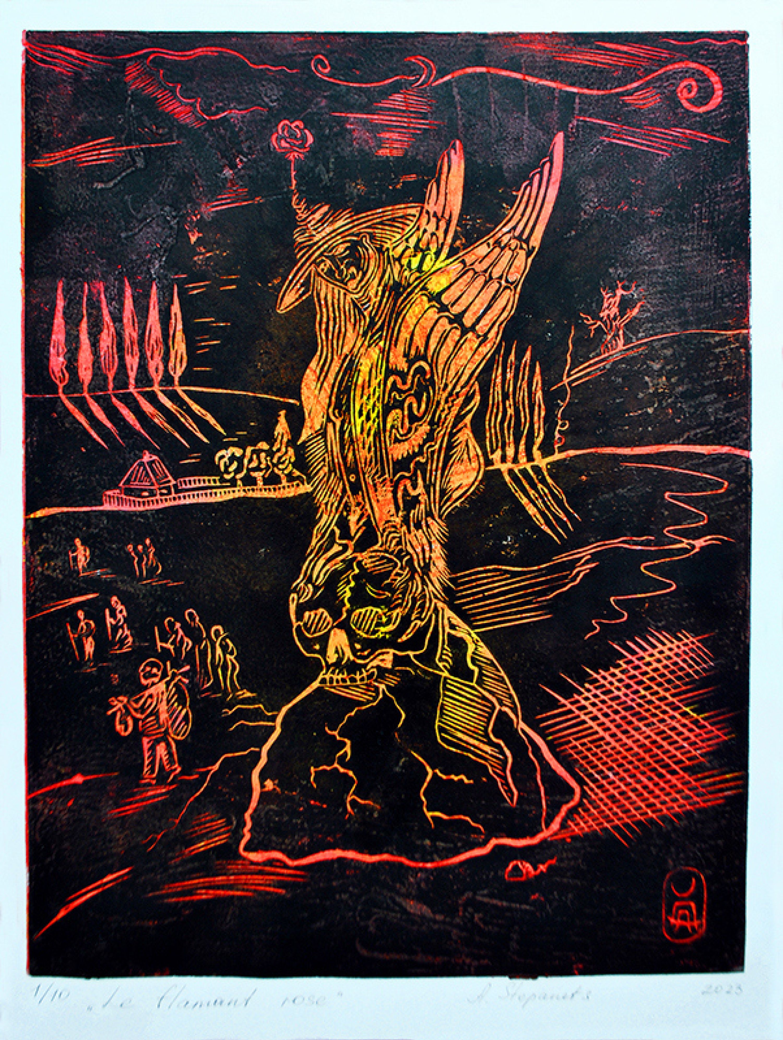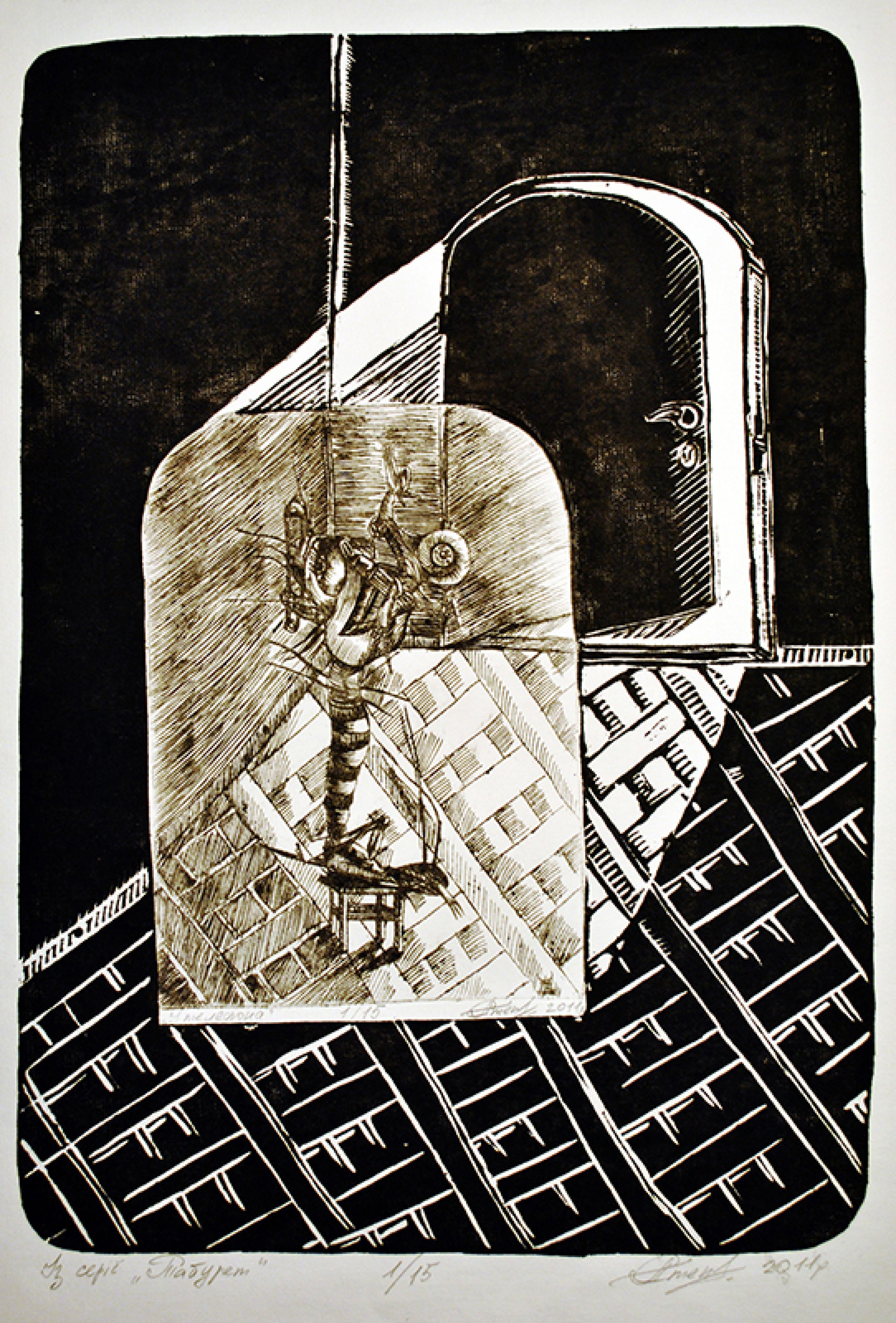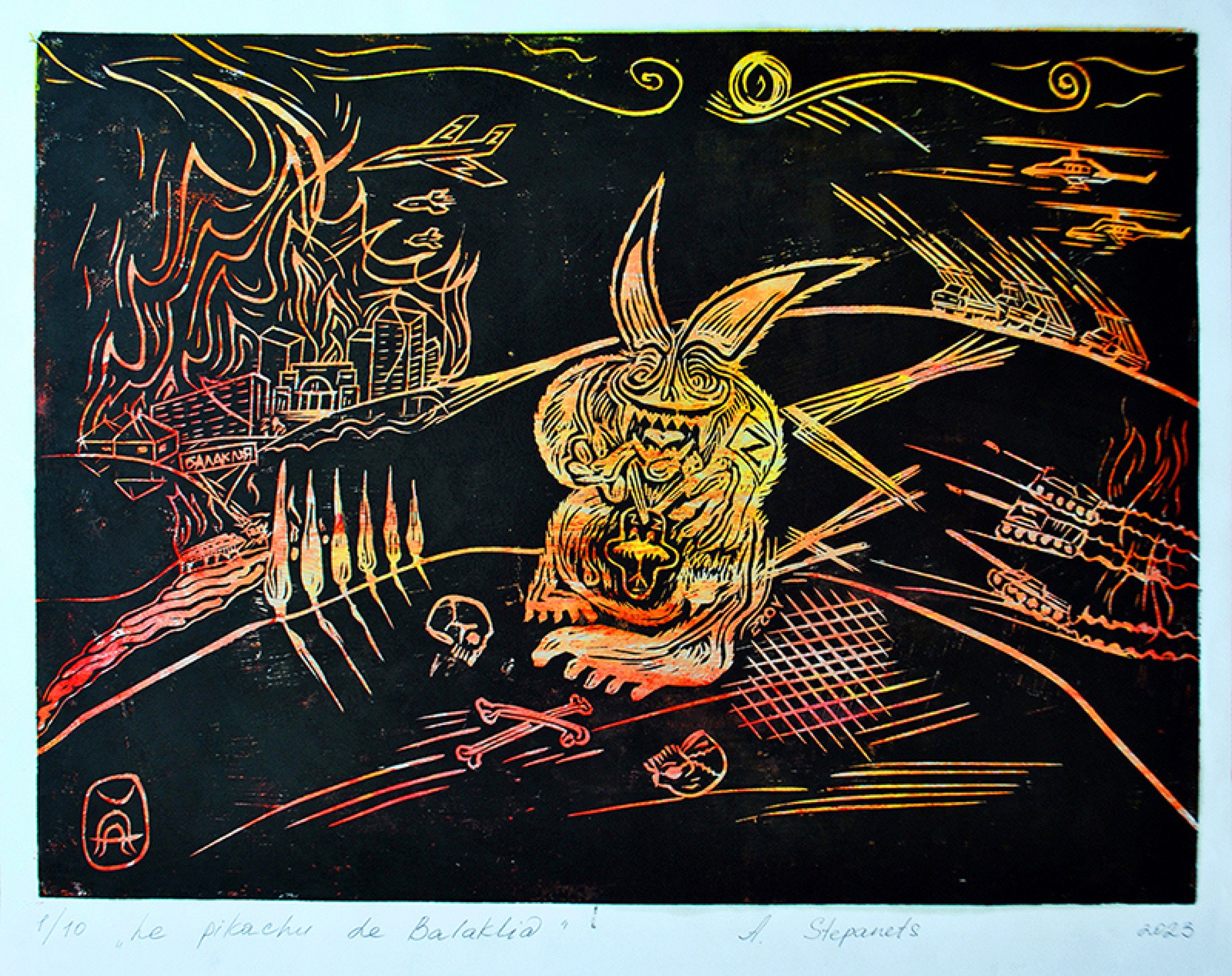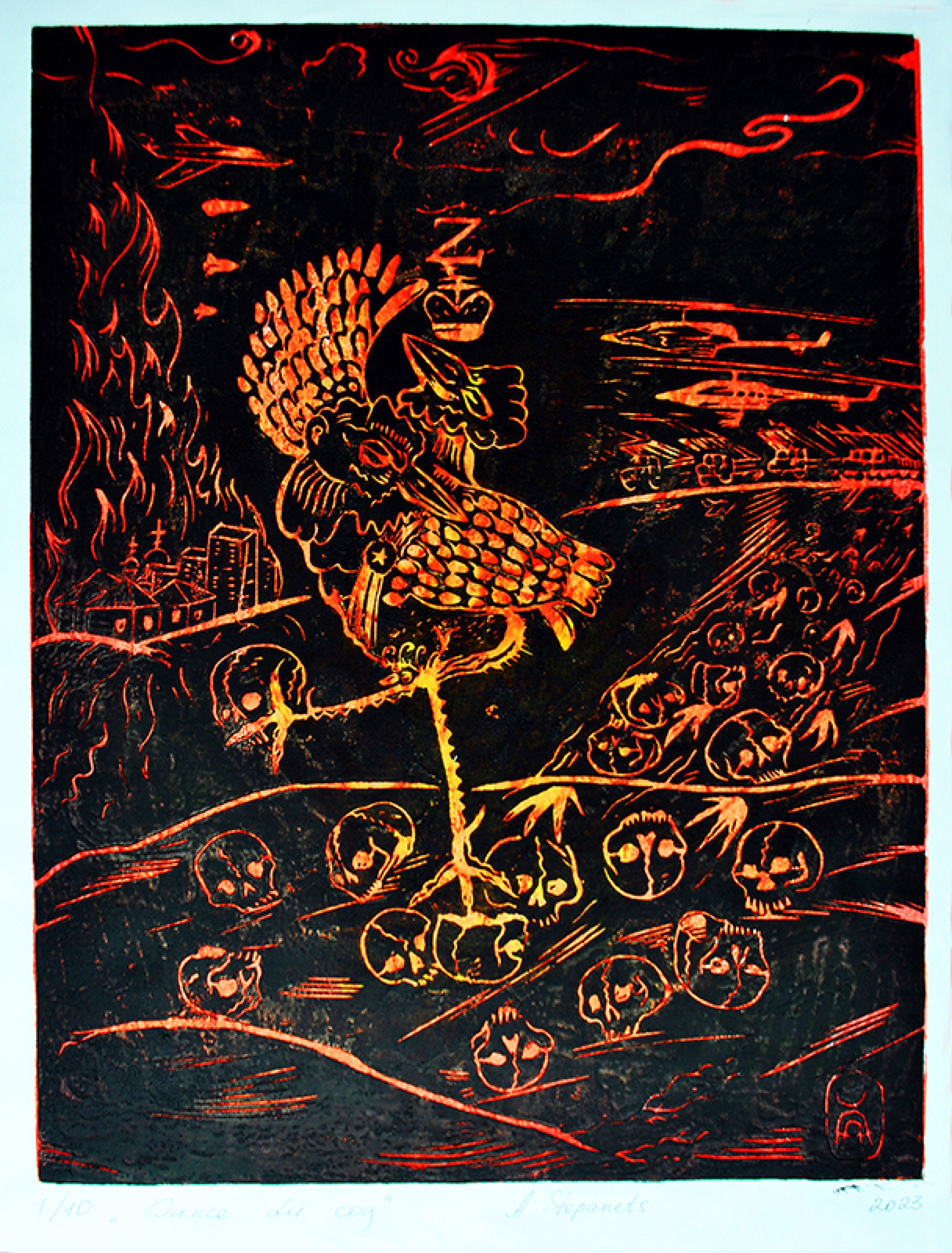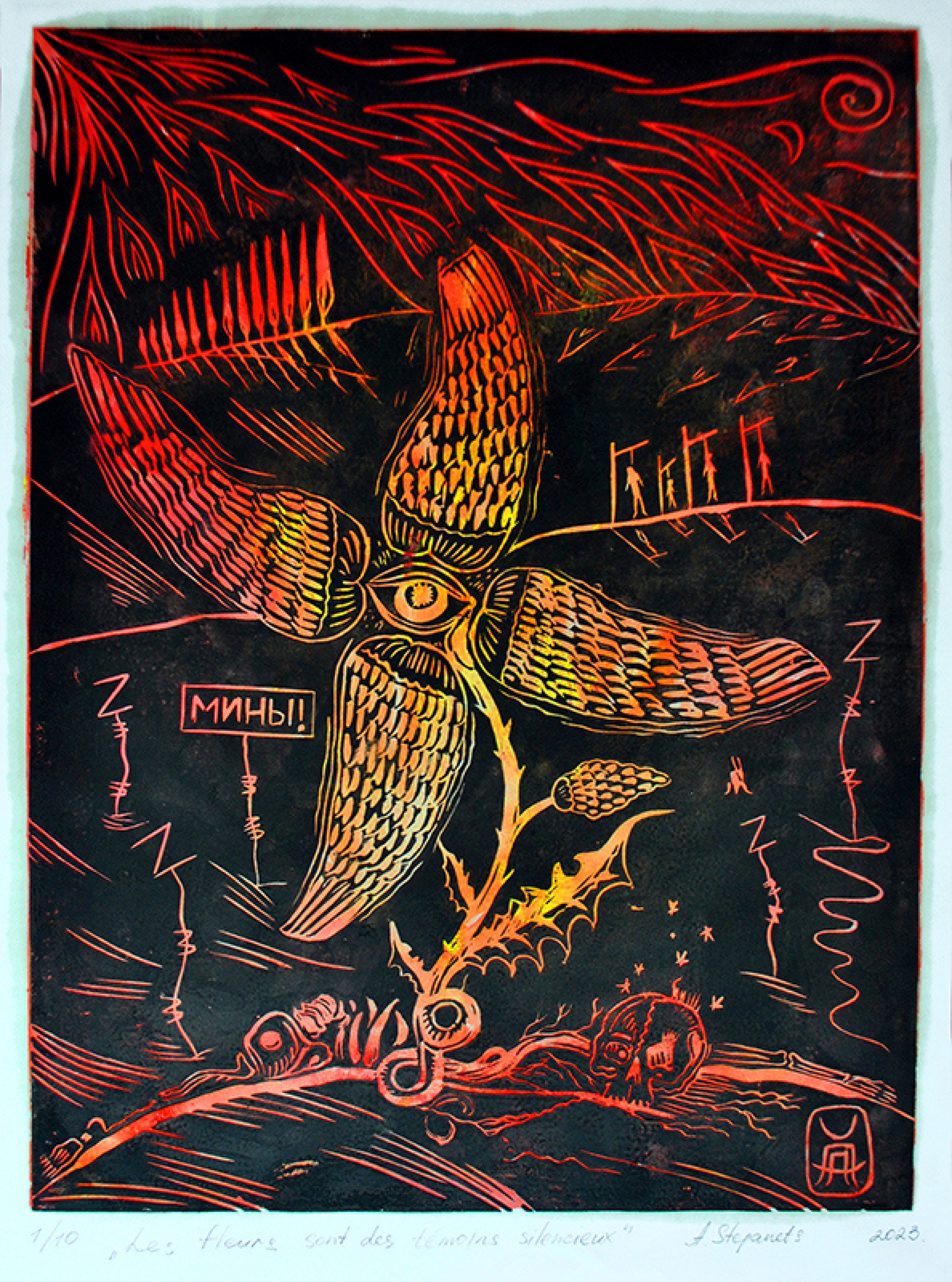 Alexander Stepanets is working on creating graphic images, continuing the series in linocut technique "ZWO" based on personal, lived, emotional experience. Since 2023, also a volunteer and activist for the Association for Human Rights in Conflict Zones (AHRCZ) in Geneva, Switzerland.