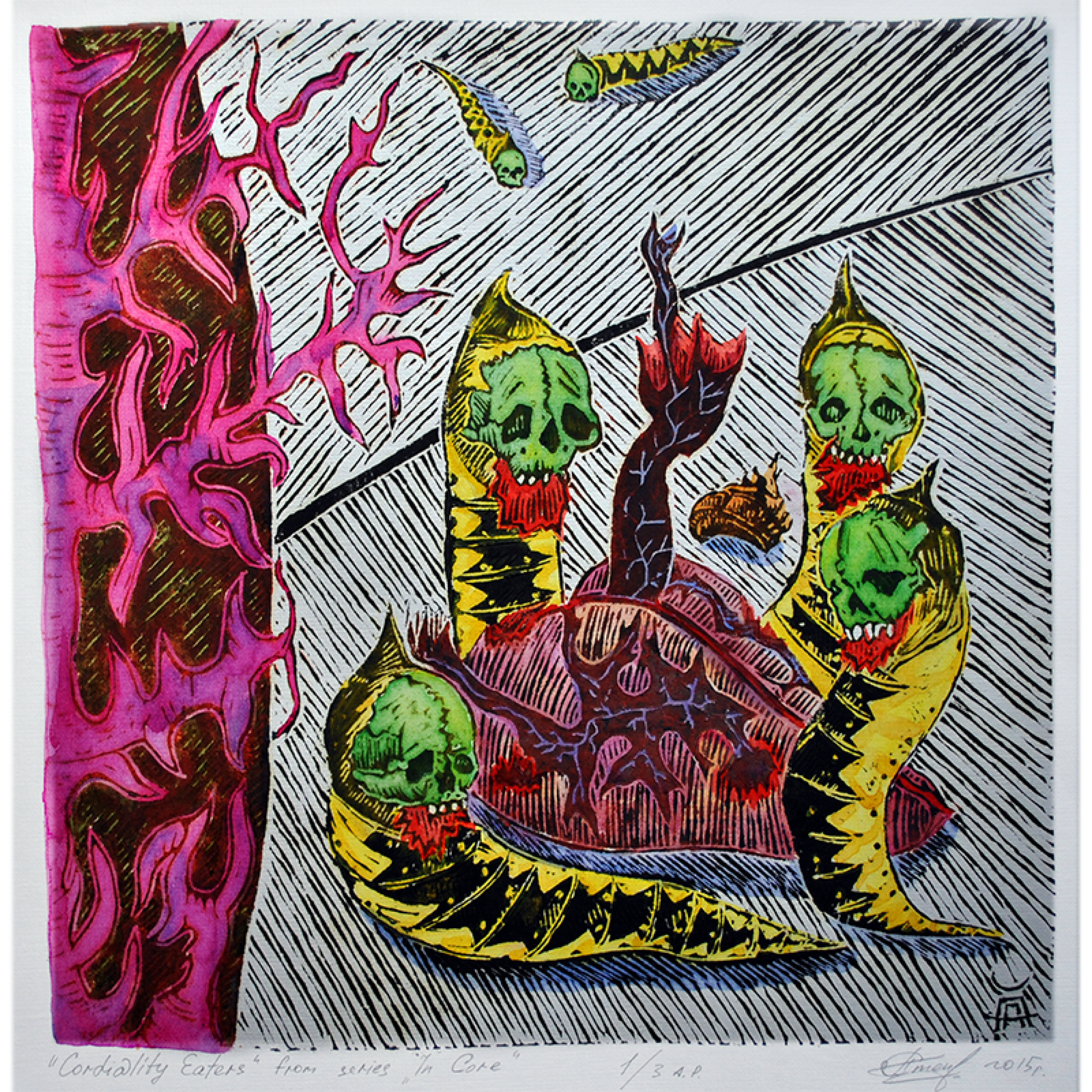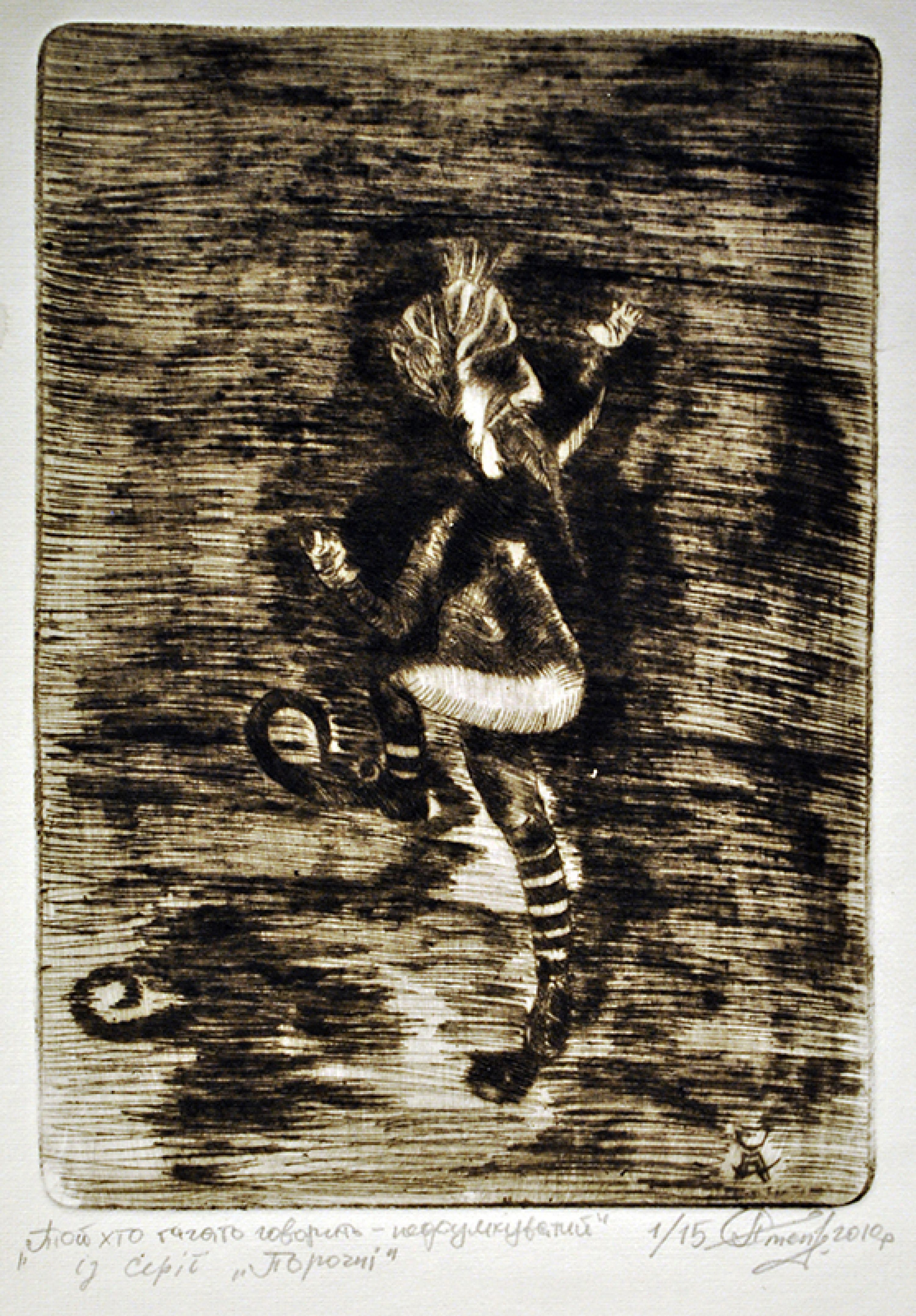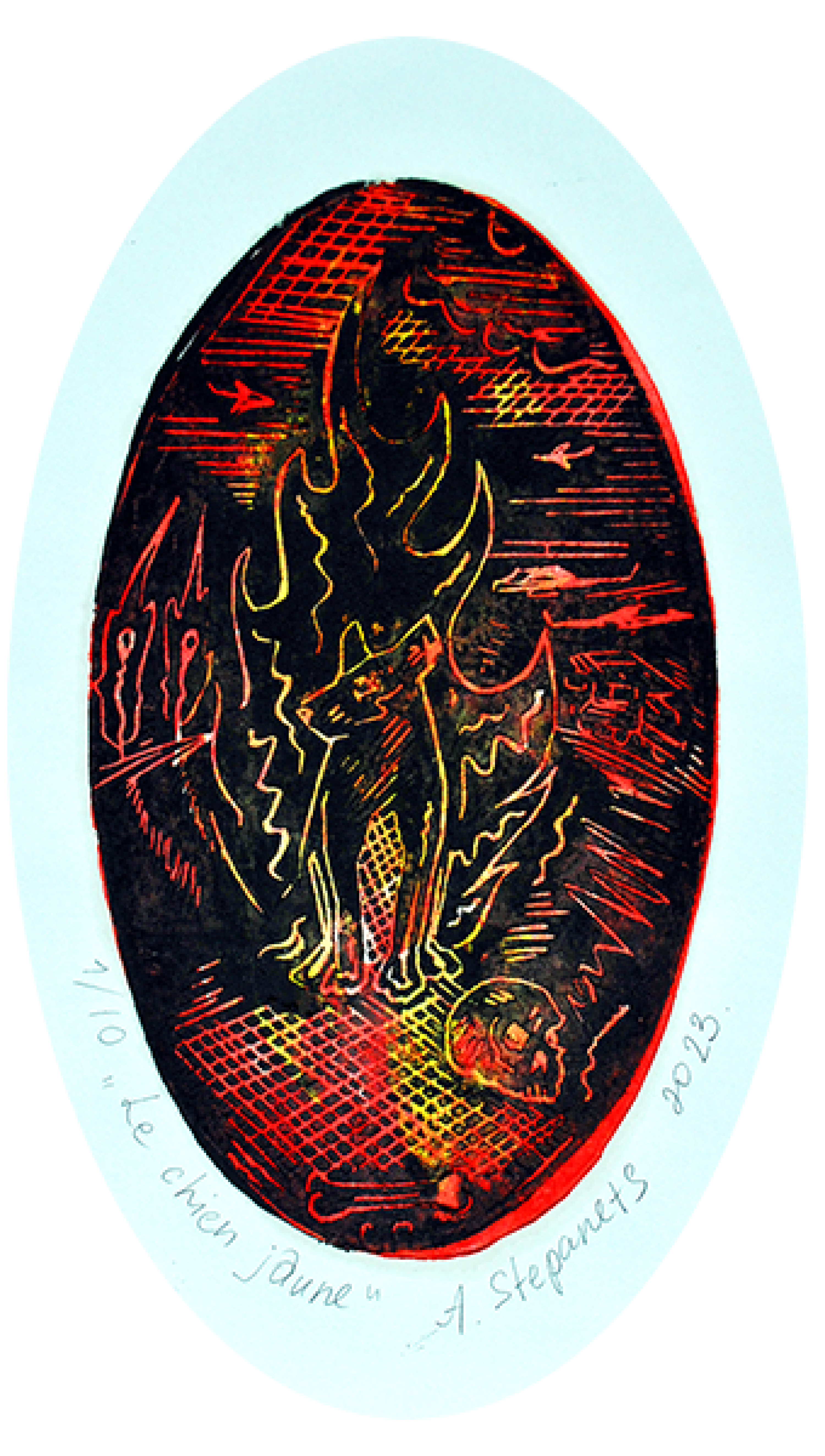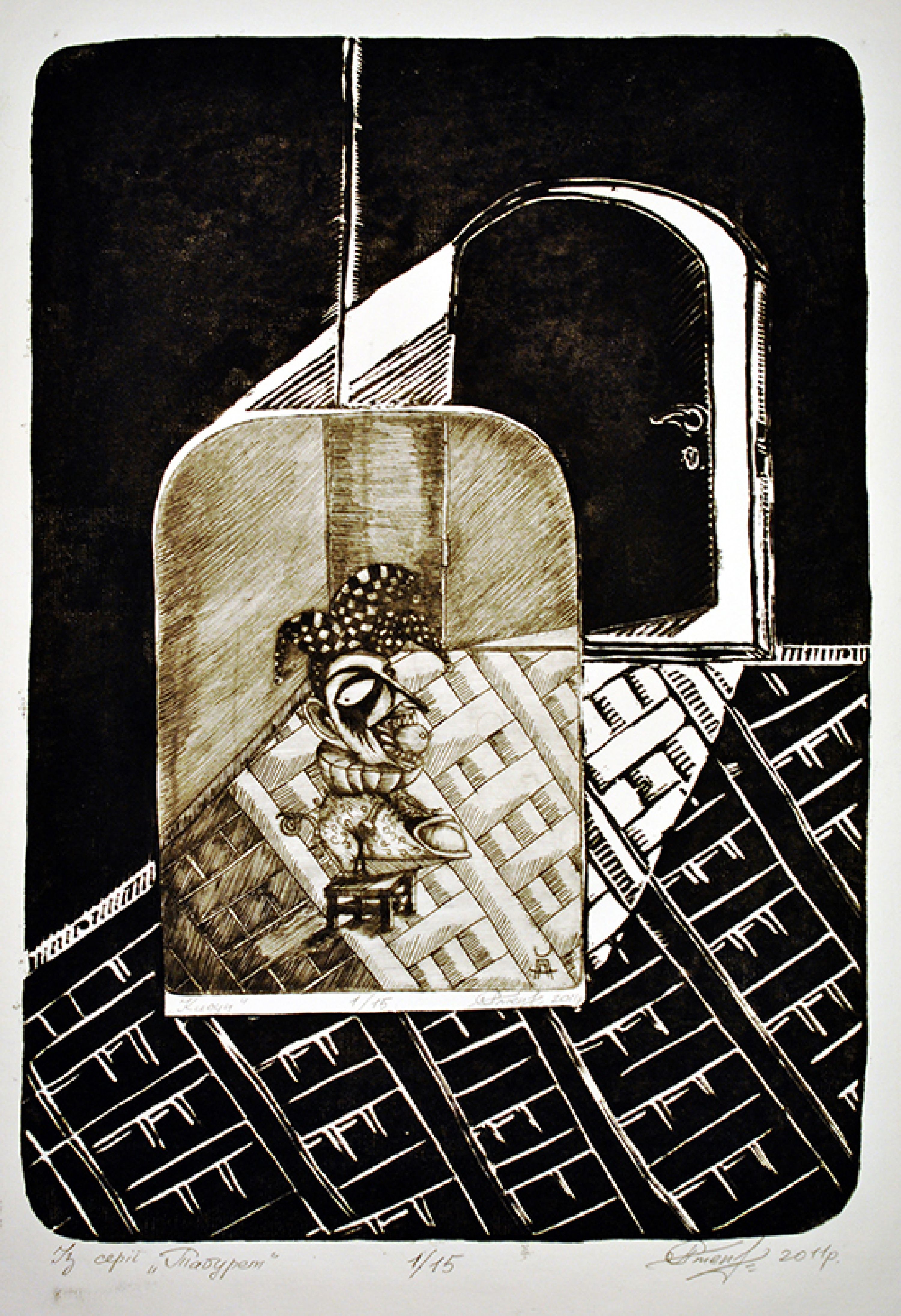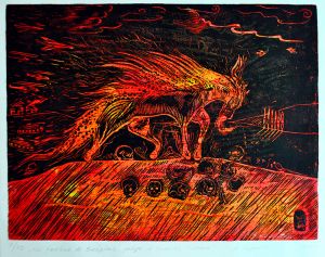 Alexander Stepanets is working on creating graphic images, continuing the series in linocut technique "ZWO" based on personal, lived, emotional experience. Since 2023, also a volunteer and activist for the Association for Human Rights in Conflict Zones (AHRCZ) in Geneva, Switzerland.