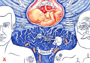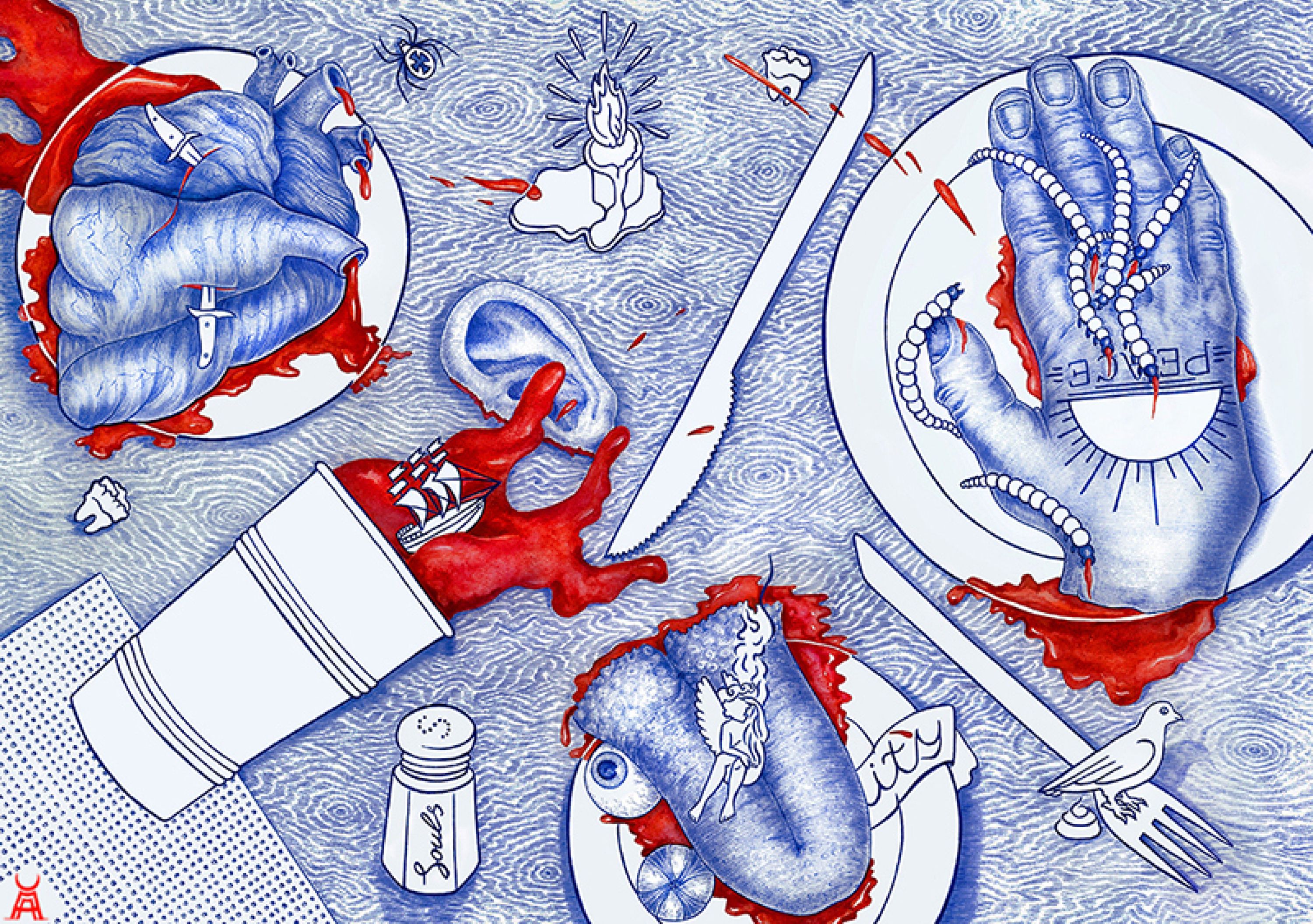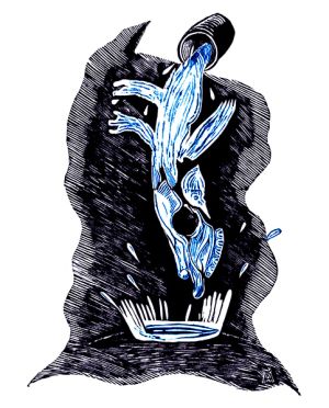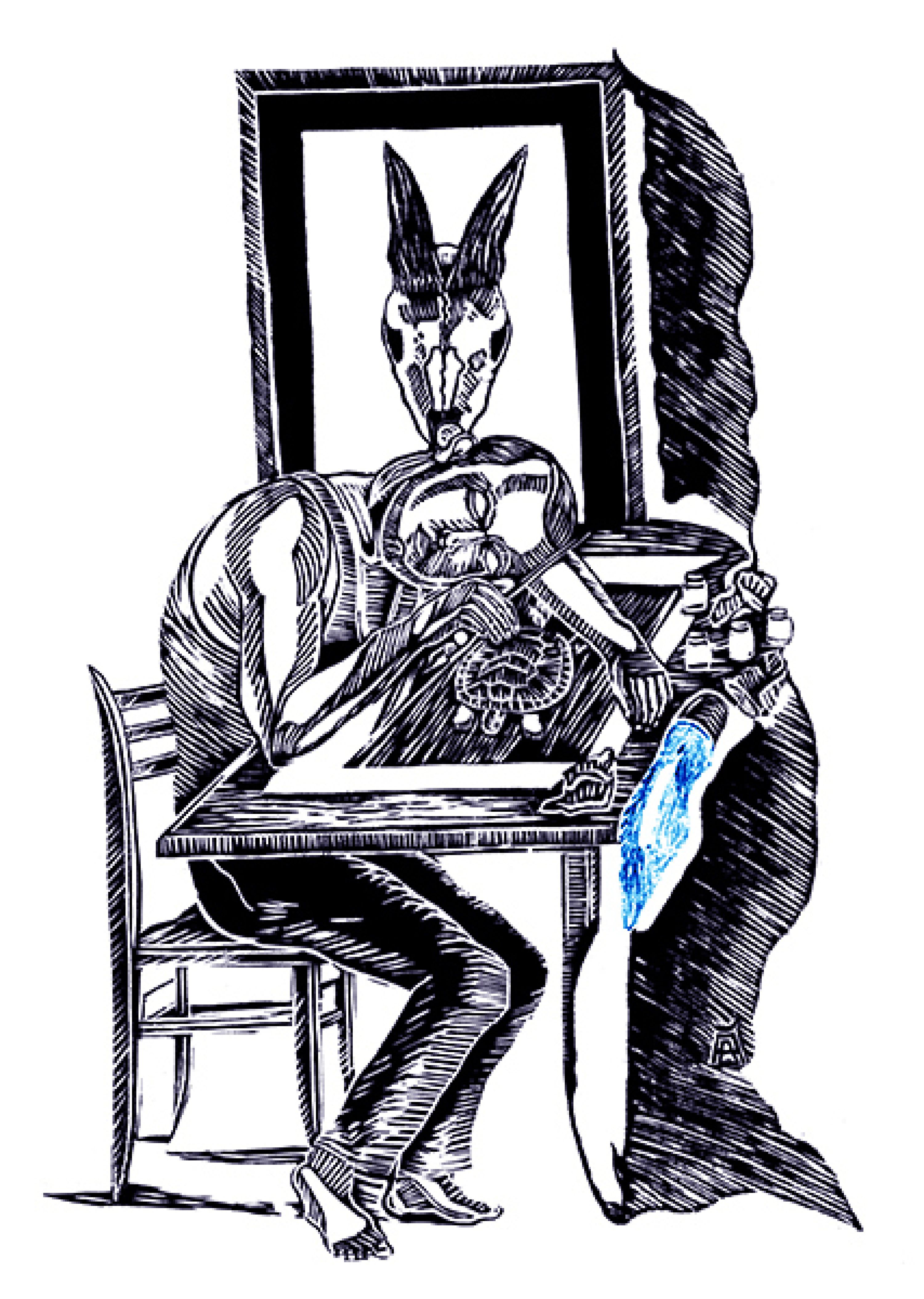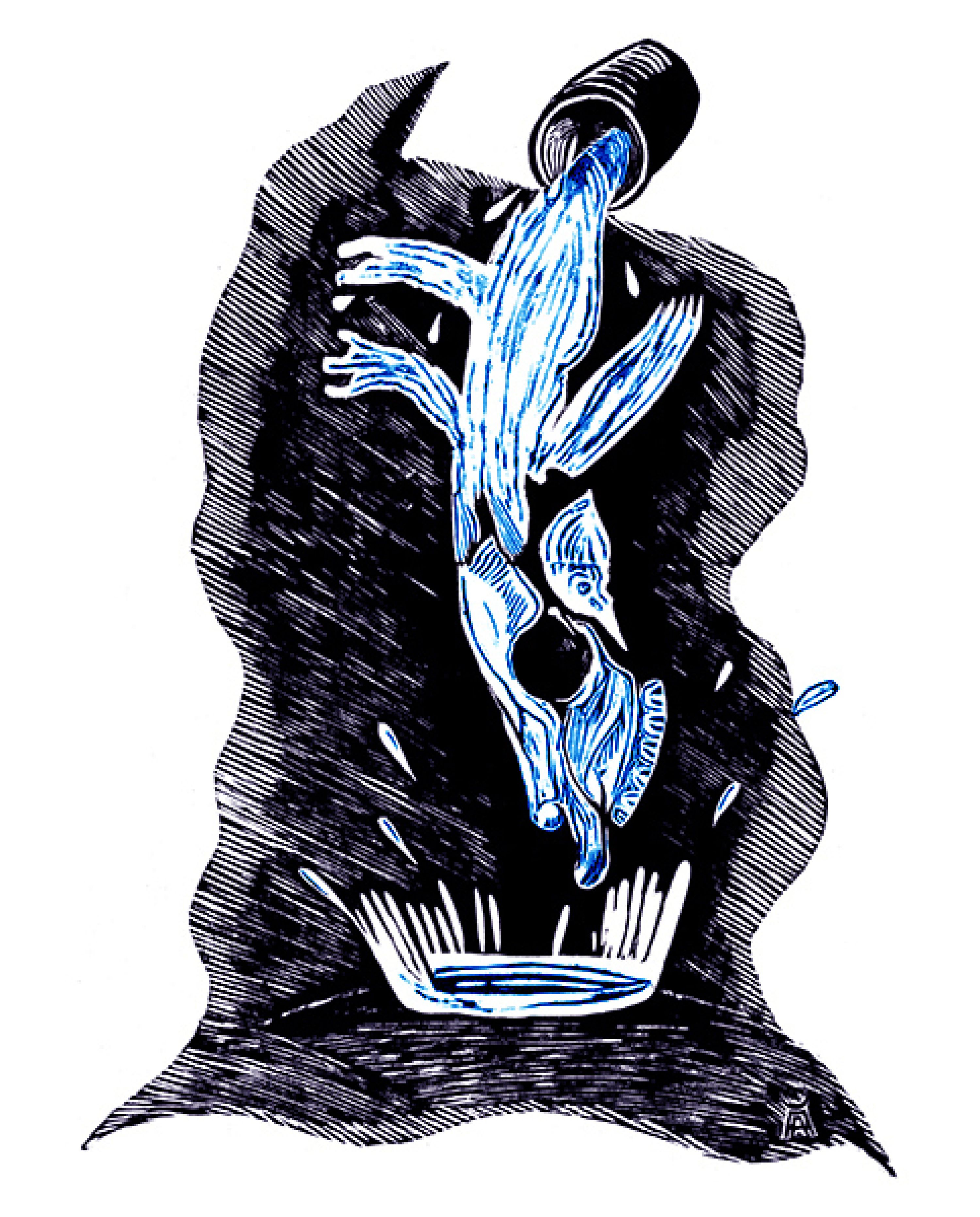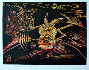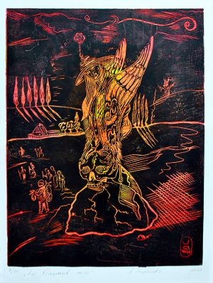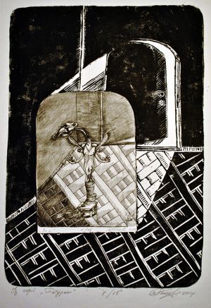 He works in different techniques that best embody the required idea: engraving, painting, graphics, watercolor, illustration and mixed medias.