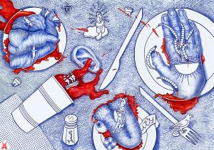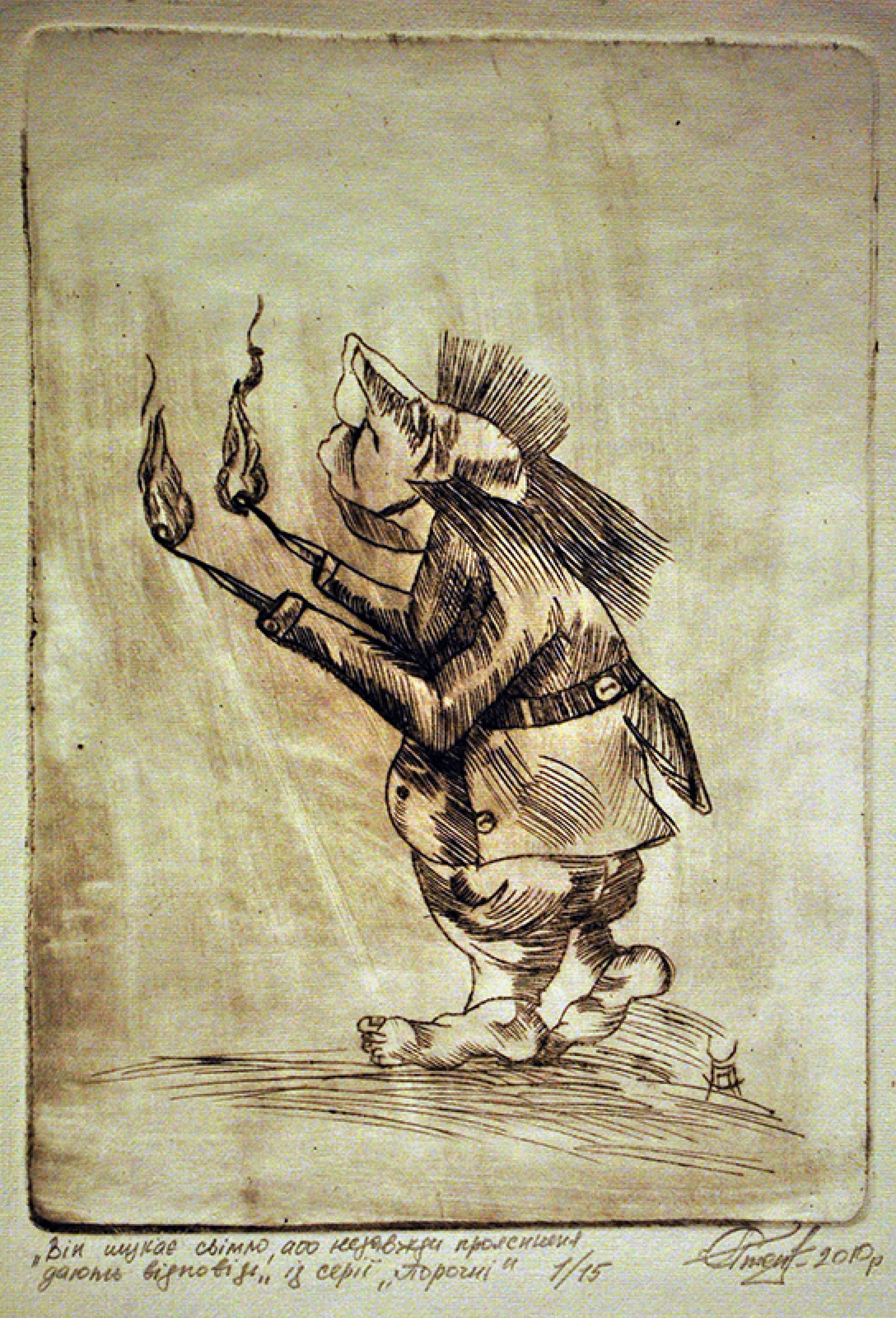 Stepanets has dedicated all his work to revealing the social and psychological problems of society and the individual in his harsh satirical style. The form of artistic illustrations of emotional, harsh, deeply psychological plots, and symbolic imagery is the basis of his compositions. Another important aspect is selecting universal symbolism to make it understandable and accessible to the viewer. He is engaged in thoughtful research on the issues of art in political propaganda.