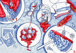 His portfolio includes series that reveal a wide range of visual studies of problems of the individual and society: "Word as Blade", "Vicious", "Stool or in a Dark Room", "ZWO", "Dreams", "In Core", "Judas or with Bread and Salt", "#DessinsauStyloaBille".